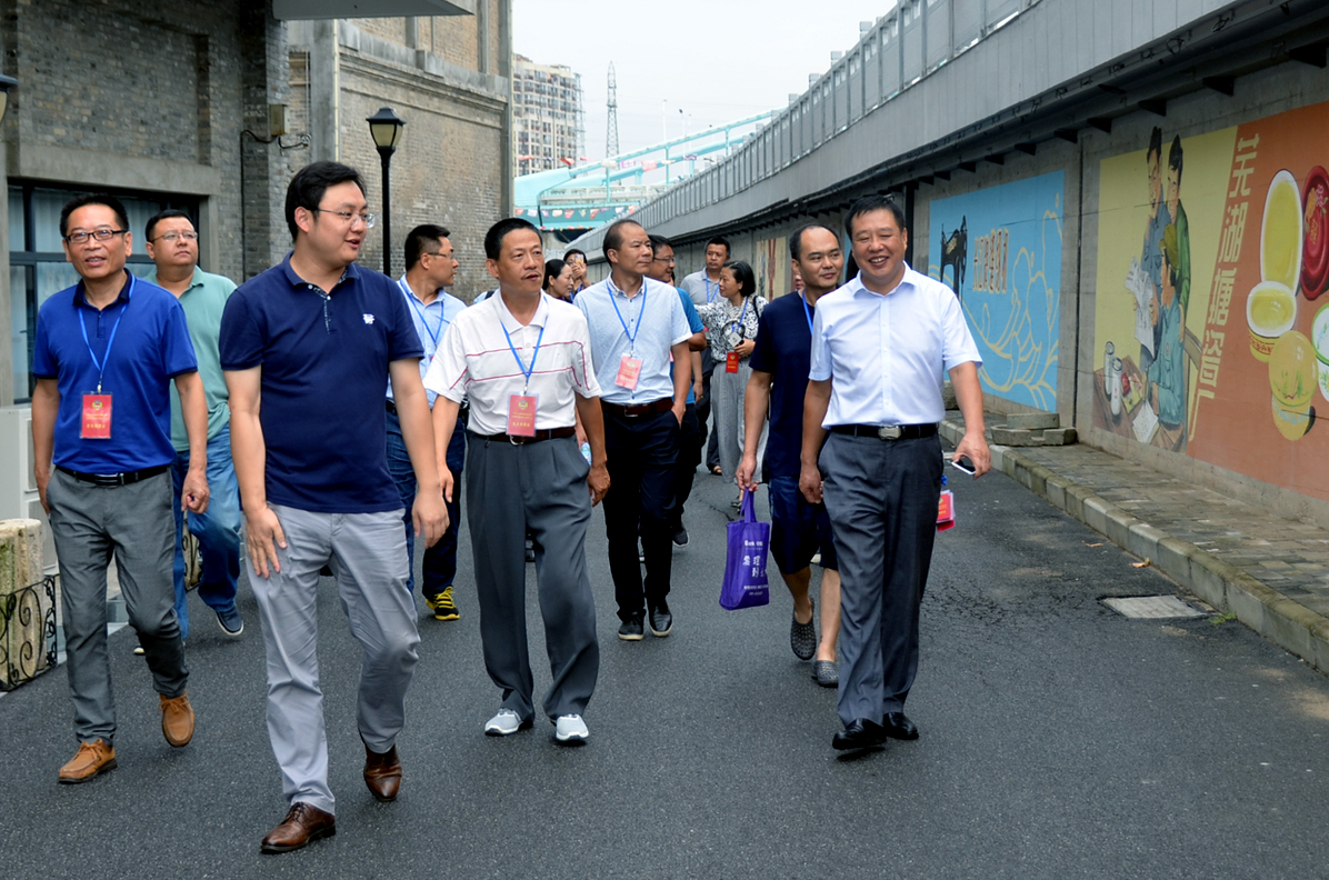 卞總向調(diào)研團(tuán)匯報(bào)了園區(qū)的歷史傳承、改造歷程及目前的基本發(fā)展情況。帶領(lǐng)參觀了益新面粉大樓及大礱坊歷史文化長(zhǎng)廊,作為蕪湖工業(yè)象征的“兩個(gè)半煙囪”的僅存見(jiàn)證,百年益新面粉大樓在經(jīng)過(guò)修整后也再次踏上新的征程。而在今年8月正式竣工的大礱坊歷史文化長(zhǎng)廊,利用墻繪的方式,生動(dòng)的記錄了礱的誕生以及大礱坊的工業(yè)歷史變遷,長(zhǎng)達(dá)450米的手工墻繪,目前已成為蕪湖的一張文化名片。