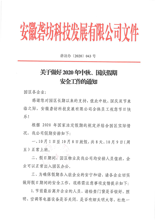 關(guān)于做好2020 年中秋、國(guó)慶假期安全工作的通知